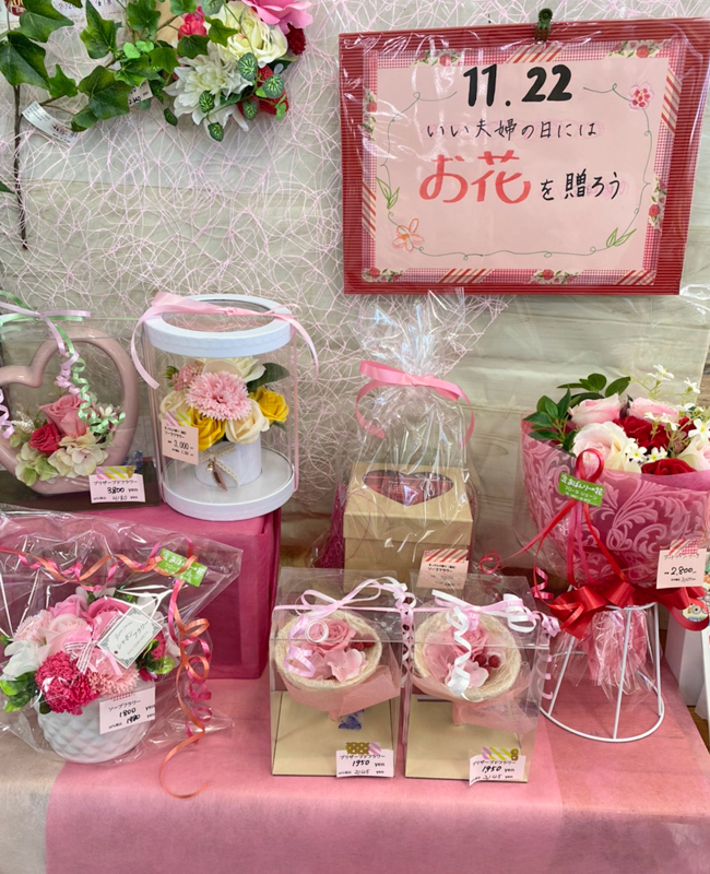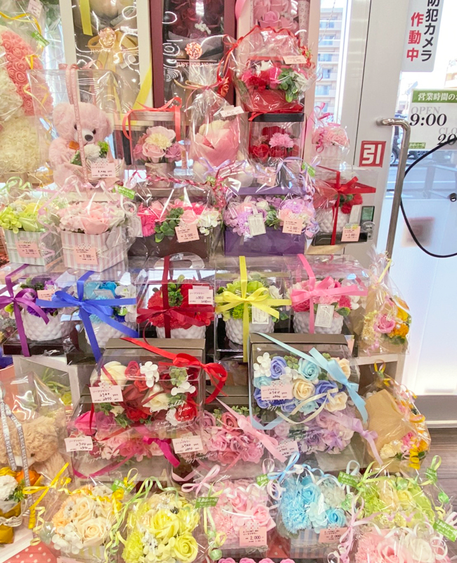 お手頃価格で華やかなソープフラワーはプレゼントに大好評です。